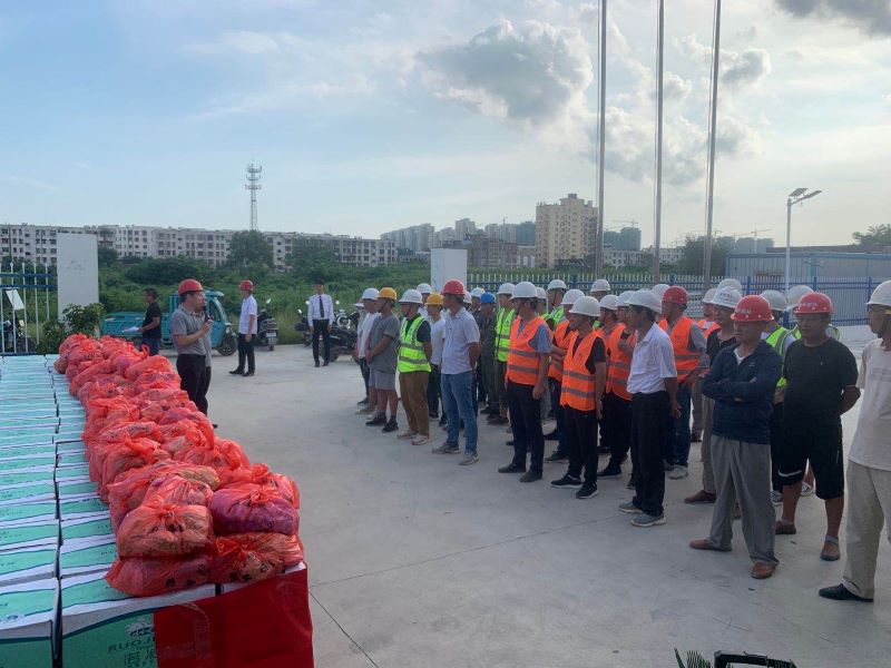 活动首先来到施工现场对坚守在一线岗位的工作人员进行慰问,并叮嘱现场工作人员要针对夏季高温施工特点,合理调整施工时间,做好防暑降温措施,预防和控制高温天气引发的各类突发事件,确保项目人员人身安全。随后为现场人员送去消暑降温的清凉饮品、水果和避暑药品,为炎炎夏日带来一丝清凉。