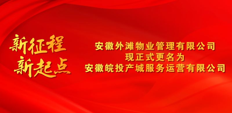 此次更名,标志着公司转型升级迎来一个重要的发展契机。未来,我们将以安徽省投资集团和安徽皖投置业公司战略发展为引领,在做优做强传统物业的同时,承接资产运营、产业运营、城市服务相关业务。公司将以“敬业成就专业,平凡铸就非凡”为企业宗旨,秉承“用心服务、以爱相伴”的服务理念,本着专业、严谨、真诚、创新的态度,坚持以追求客户满意度为终极目标,做美好生活的缔造者,共筑美好未来!