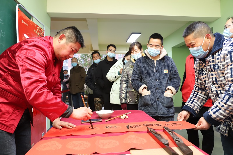 活动现场,支部书记杜玲代表公司党支部向业主们致以新年美好祝福。书法家现场挥毫泼墨创作春联,将一幅幅飘散着清新墨香、寓意吉祥的春联,送到现场业主手中。支部党员们现场悉心做好防疫和服务工作。