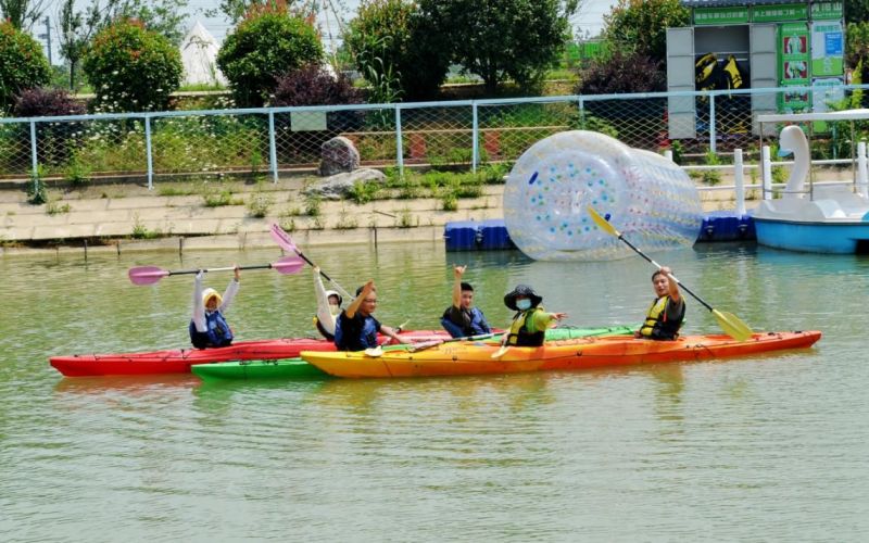 在美丽的湖中畅游,大家尽情享受夏日的欢乐时光。皮划艇不仅加强了团队之间的联系,还培养了团队合作的能力和信任。